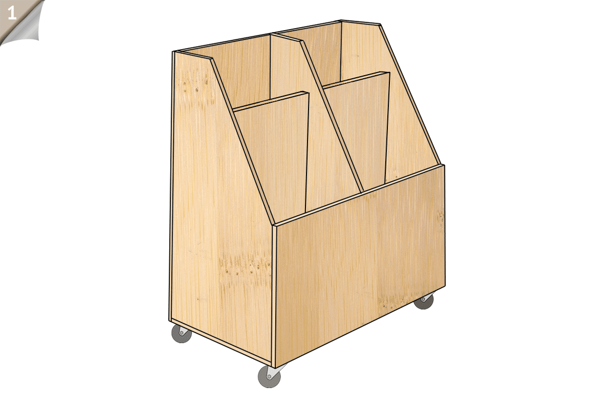 Your bin frame in now constructed! All that’s left to do to make it portable is to attach the casters. Simply lay the bin on its back, hold each caster up to the corner edges of the base, mark the holes with a pencil, drill pilot holes appropriately and then screw to the base with your 1" wood screws.